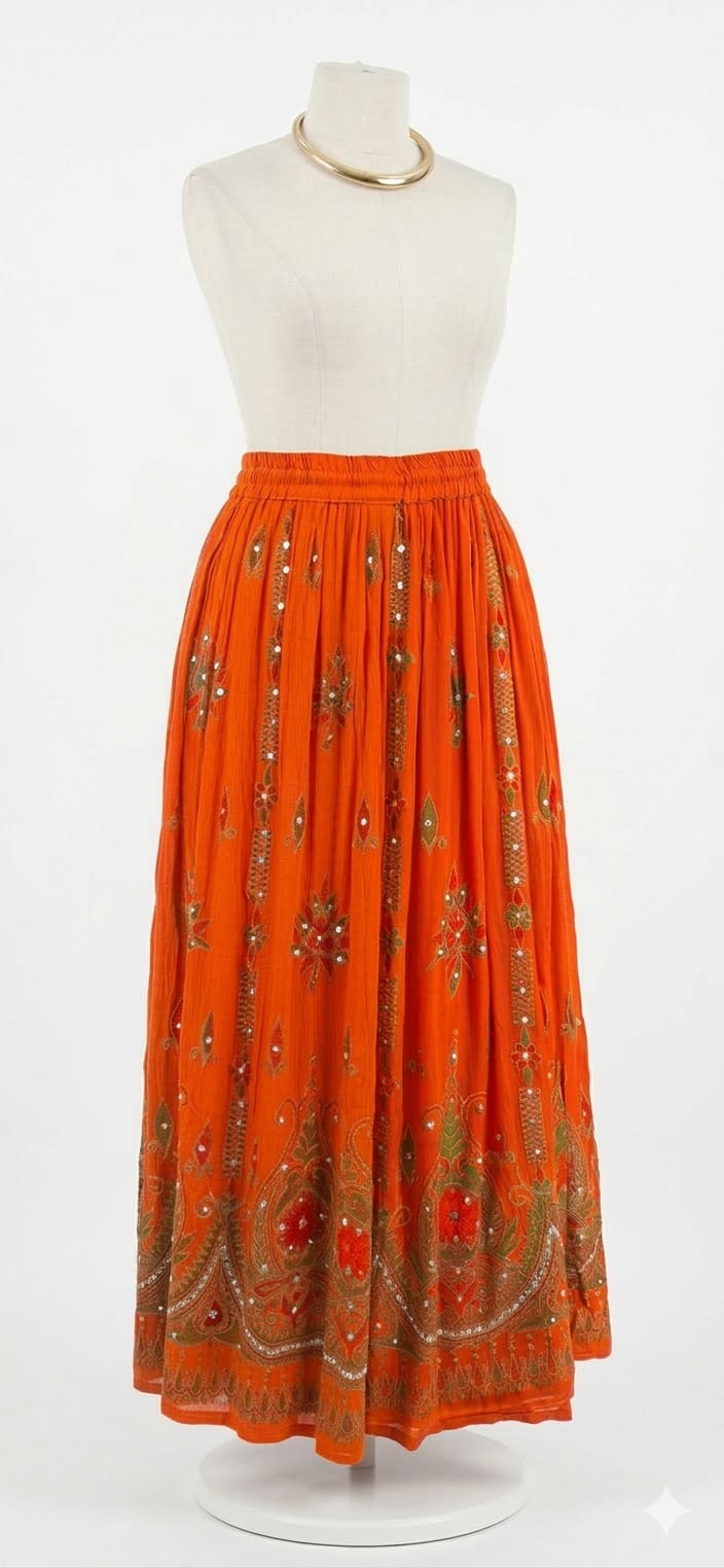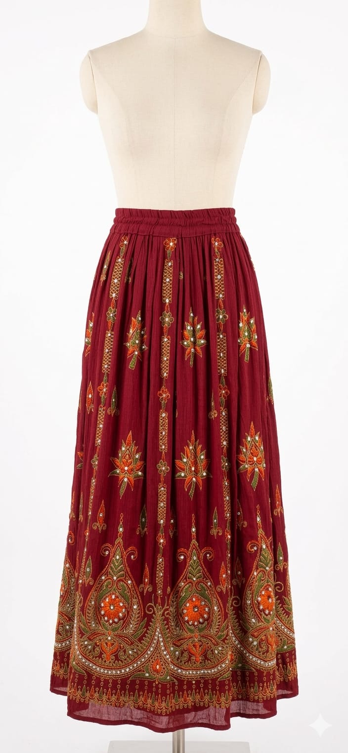 Long Indian-style skirt featuring beautiful traditional embroidery that adds a unique and elegant touch